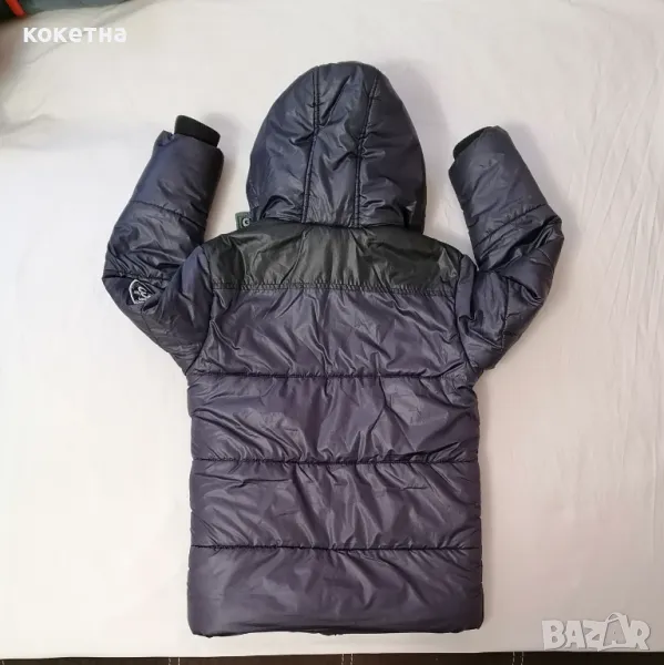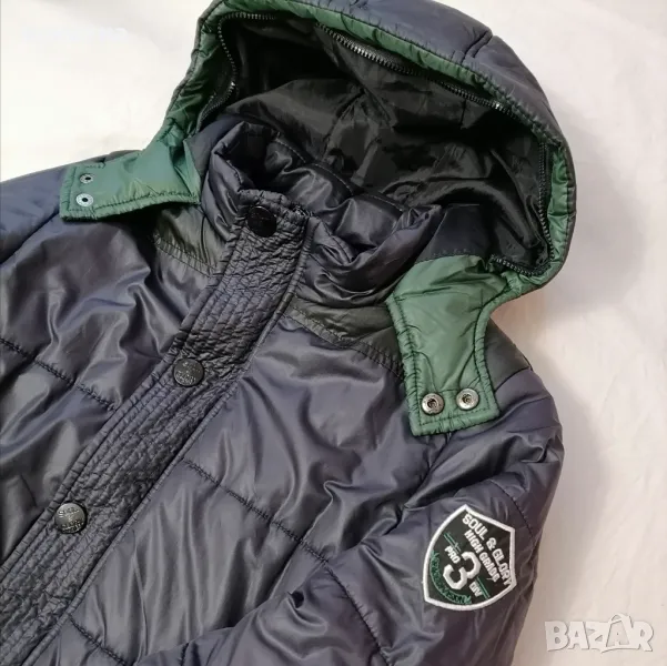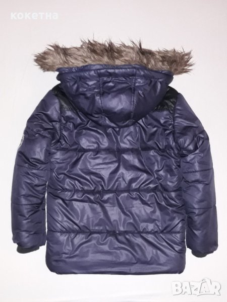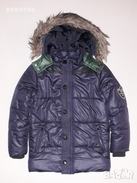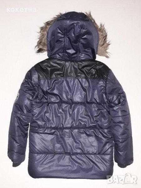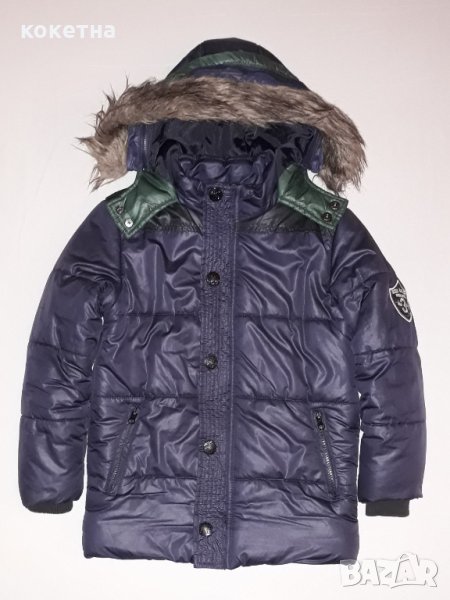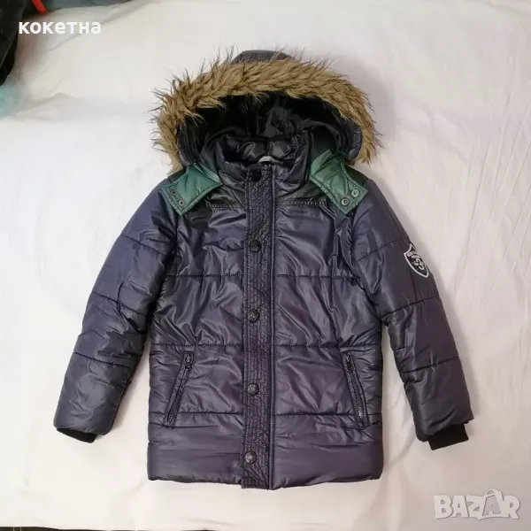 Красиво и топло якенце Soul & Glory, по етикет за 7-8години р.122/128, според мен за 8 годишно дете, затова най-добре вземете в предвид размерите които съм описала. Дължина 58см, ширина 44см, дължина на ръкава 48см. Ръкавчето има ластиче за да не пропуска вятър. Пухчето е с цип и се сваля. На последната снимка се вижда забележка на дясното ръкавче, шушляка е одраскан, но не е скъсано и моя син го носи така, но може да се сложи и емблема.