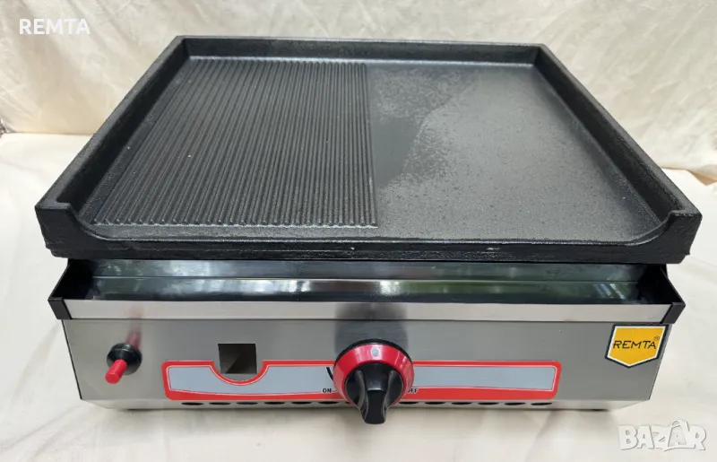 Професионална Газова скара чугунена плоча ½ Оребрена ½ Гладка 50х51см с газова защита CE → Обява 34818403