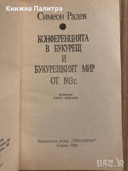 Конференцията в Букурещ и Букурещкият мир от 1913 г.-Симеон Радев → Обява 34818420
