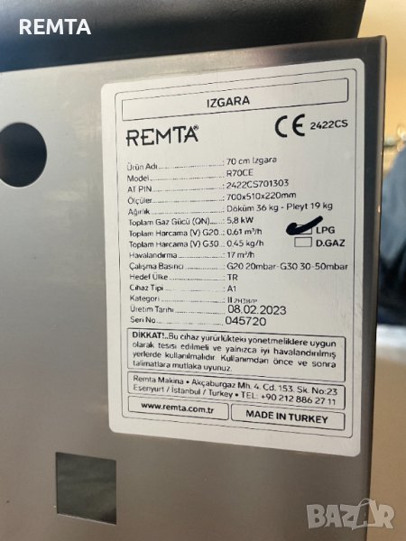 Газова Скара стоманена плоча гладка , 70 Cм с газова защита + СЕ СЕРТИФИКАТ