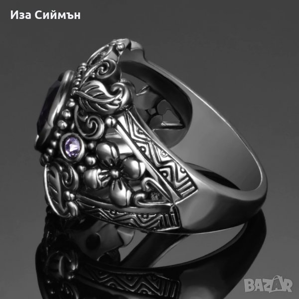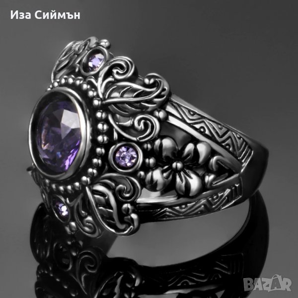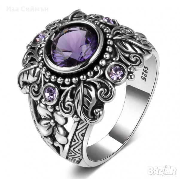 Сребърен пръстен с лилав аметист → Обява 34818740