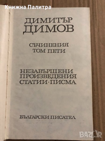 Съчинения в пет тома. Том 5: Незавършени произведения, статии, писма Димитър Димов → Обява 34823640