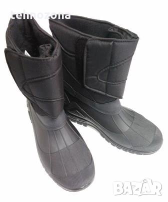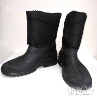Апреските от вътрешната си страна са изцяло с термо вата. От външната страна, отпред и на петата са подсилени. От глезена, на горе външно са изработени от промазана текстилна материя, която не пропуска влага и студ.Уплътняването към краката става с залепваща велкро-лепенка.В горната си част, апреските са уширени и спокоино може да вкарвате в тях крачолите на панталоните след което с велкро-лепенките пристягате. Подметката е с едроизразен грайфер, изцяло отлята,без слепвания и шевове.Цялата височина на апреските е 28 см., цвят: черерн.