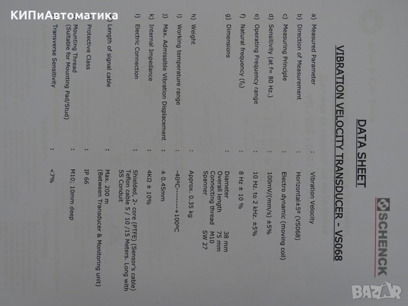 вибродатчик SCHENCK electrodynamic vibration sensor VS-068 → Обява 34824944