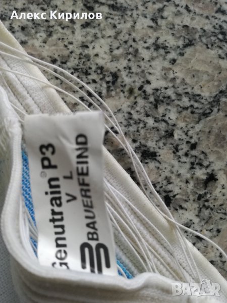 Наколенките за здрави,само ластиците в горната част са излезли,но са здрави и още могат да се ползват.,затова са такава цена.Раз. 5 (в долната част на крака е 40-44см.обиколка,в горната 48-54см.),дълж.38см.