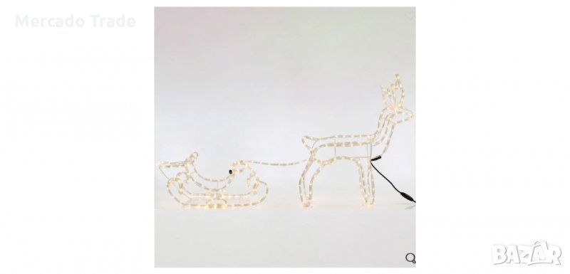 Светеща коледна украса с елен и шейна. Осветлението му е постоянно и има таймер с 6h On / 18h Off. Украсете балкона, градината или входа на къщата и посрещнете най-големия празник на годината.