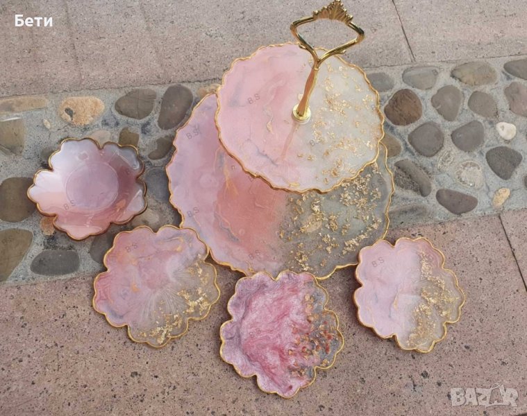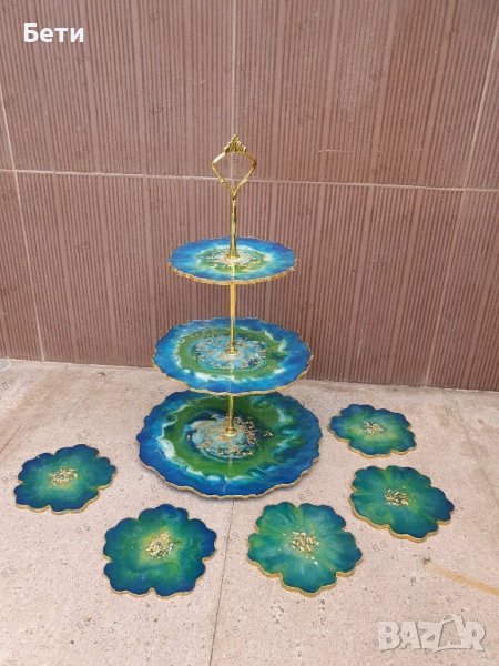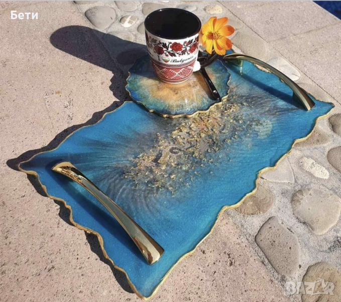 Ръчно изработени подноси за сладки, подложки за чаши и купички от епоксидна смола.