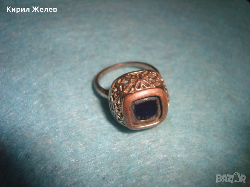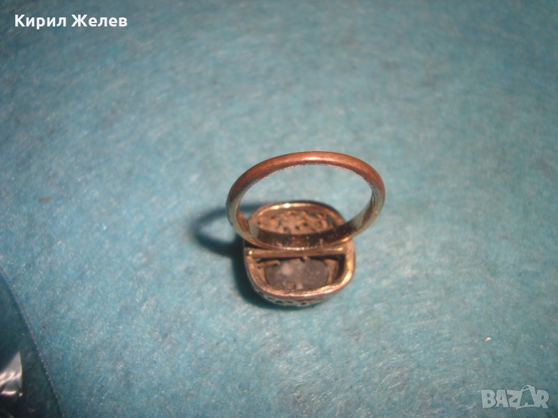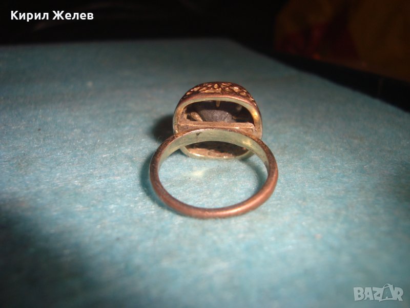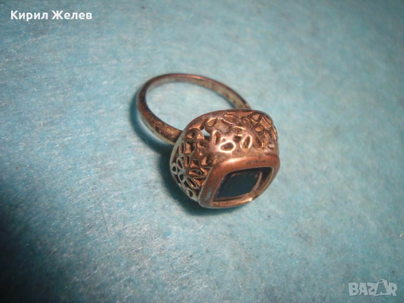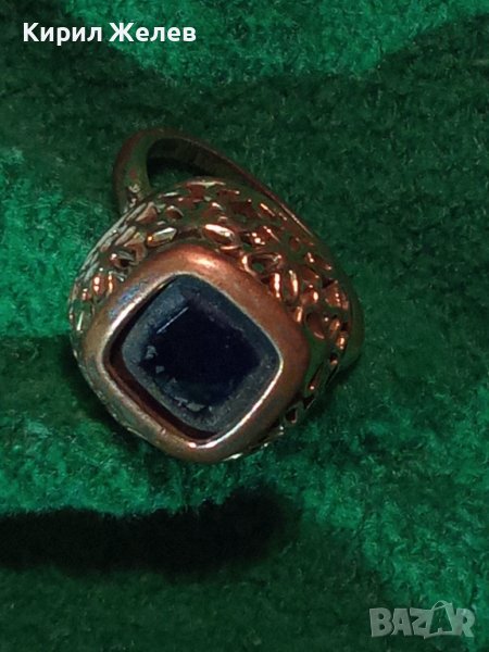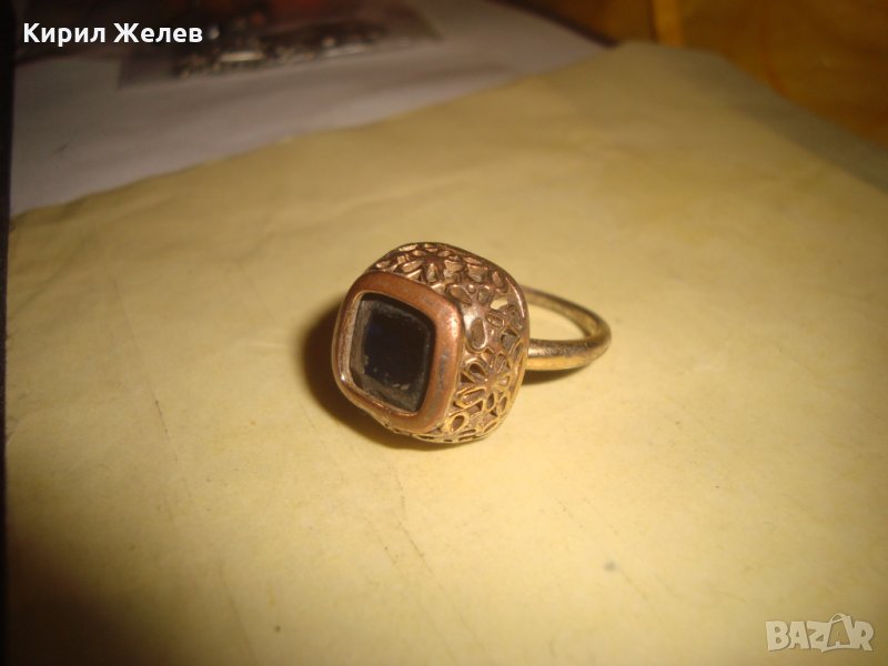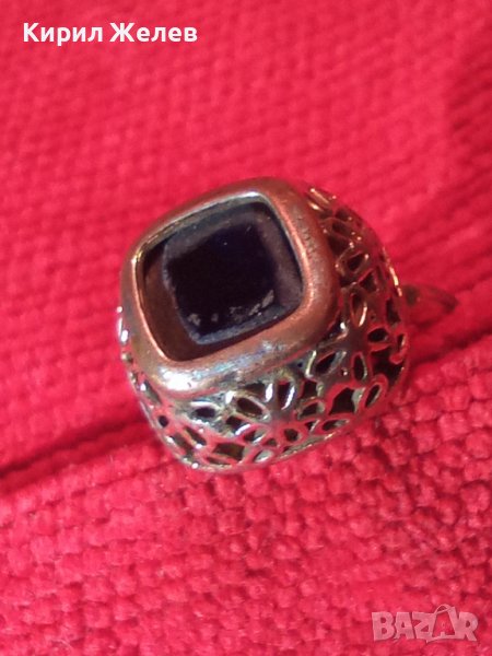 СТАРИНЕН МЕДЕН ПОЗЛАТЕН СКЪПОЦЕНЕН ПРЪСТЕН ЮВЕЛИРНА МАЙСТОРСКА ИЗРАБОТКА с ЧЕРЕН ОНИКС УНИКАТ 26803