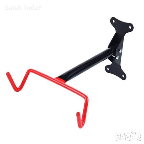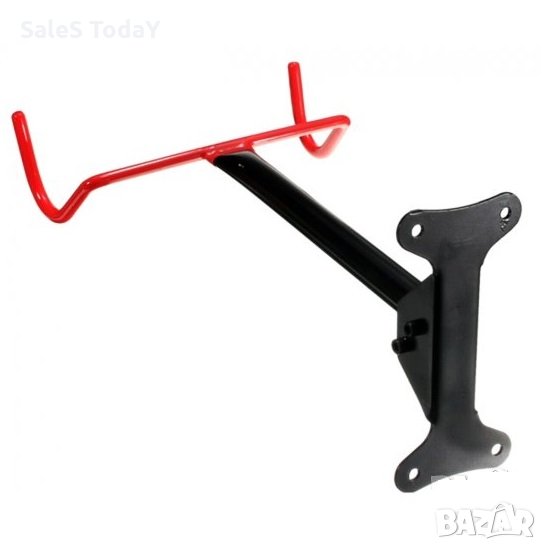 пространството, необходимо за съхранение на велосипеди.Здрава конструкция - закачалката е направена от дебели метални профили.Държачите на закачалките са покрити с гумен капак, за да предпазят рамката на велосипеда от повреда.Възможност за бързо сгъване / разгъване на закачалката в зависимост от нуждите.Удобен монтаж на стена с тапи за стена (включени).Прахово боядисани.Материал: металНатоварване: 30 кгТегло: 830 gРазстояние от стената: 40 смЦвят: черен + червени дръжки