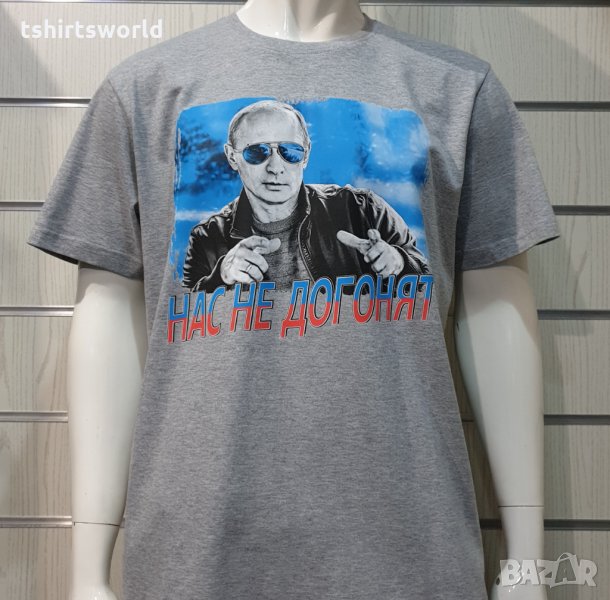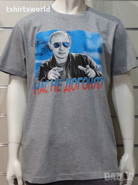 Нова мъжка сива тениска с трансферен печат Владимир Путин, Нас не догонят,Русия