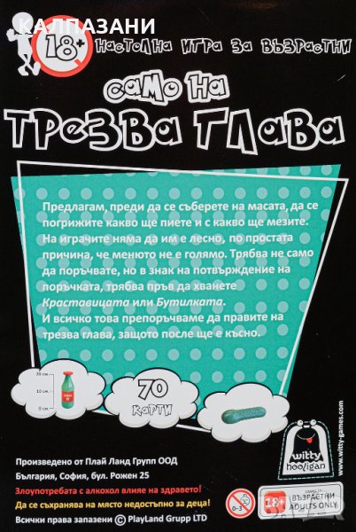 Само на трезва глава е игра за възрастни над 18 години от серията Witty Hooligan. В нея играчите трябва да правят поръчки за храна и питиета, като обаче за да ги получат, трябва да бъдат особено бързи - само този, който първи хване краставицата или бутилката ще получи това, което е поръчал!