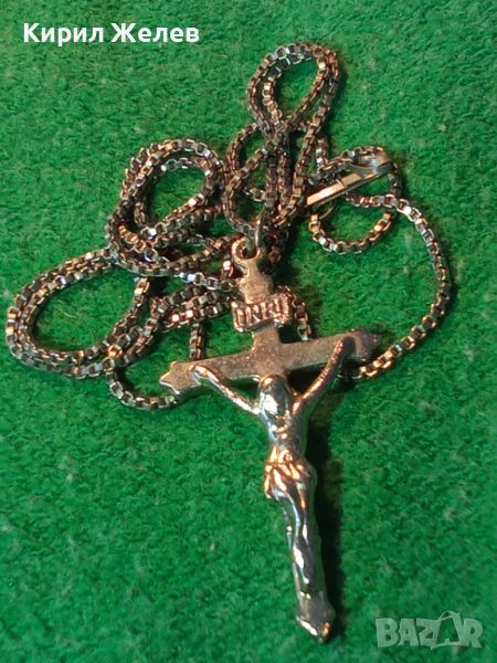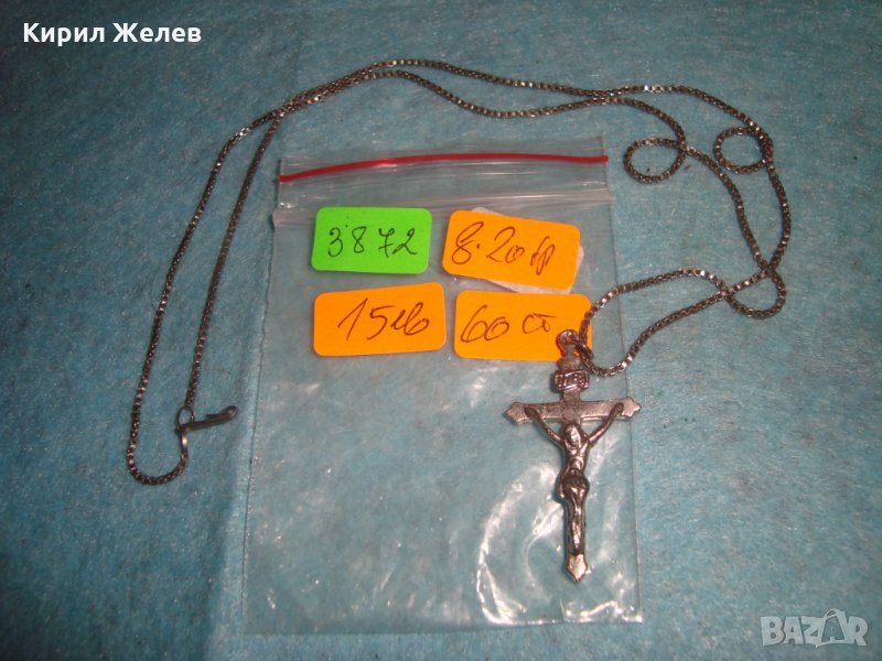СТАР НАГРЪДЕН ПОСРЕБРЕН КРЪСТ РАЗПЯТИЕ с ВЕРИЖКА 3872