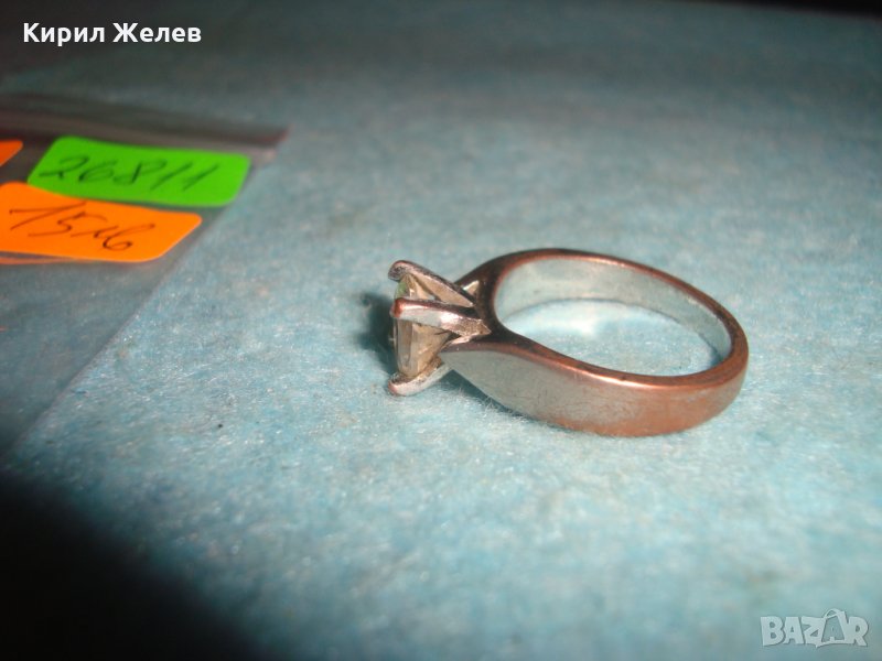СТАР ПОСРЕБРЕН МЕДЕН ПРЪСТЕН с ГОЛЯМ ЮВЕЛИРНО ФАСЕТИРАН ЦИРКОН 26811