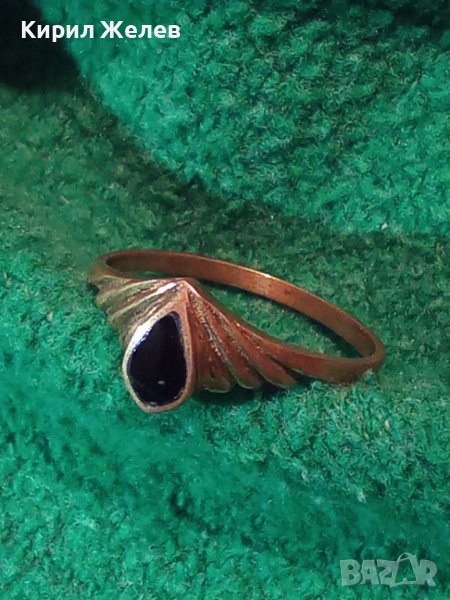 СТАРИНЕН БРОНЗОВ АРТ НУВО ПРЪСТЕН с ЧЕРЕН ОНИКС МАЙСТОРСКА ИЗРАБОТКА РЕТРО ВИНТИДЖ БИЖУ 7193