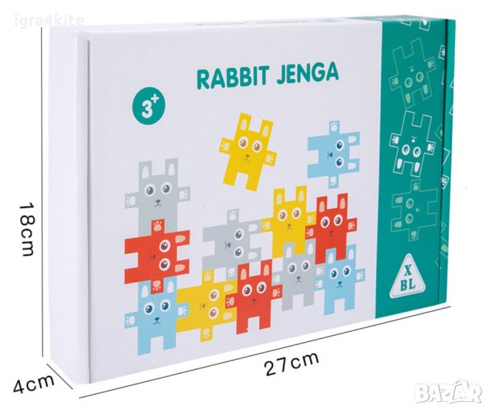 НАМАЛЕНА ЦЕНА! Дървена игра Дженга Зайчета - тетрис конструктор