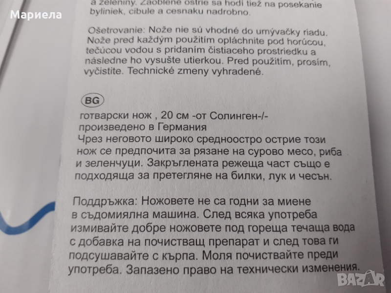 Голям нож Solingen Germаny 20см острие , Универсален нож , нож на готвача , нож за риба, снимка 1 - Прибори за хранене, готвене и сервиране - 34849356 Голям нож Solingen Germаny 20см острие , Универсален нож , нож на готвача , нож за риба, снимка 2 - Прибори за хранене, готвене и сервиране - 34849356 Голям нож Solingen Germаny 20см острие , Универсален нож , нож на готвача , нож за риба, снимка 3 - Прибори за хранене, готвене и сервиране - 34849356 Голям нож Solingen Germаny 20см острие , Универсален нож , нож на готвача , нож за риба, снимка 4 - Прибори за хранене, готвене и сервиране - 34849356 1/4