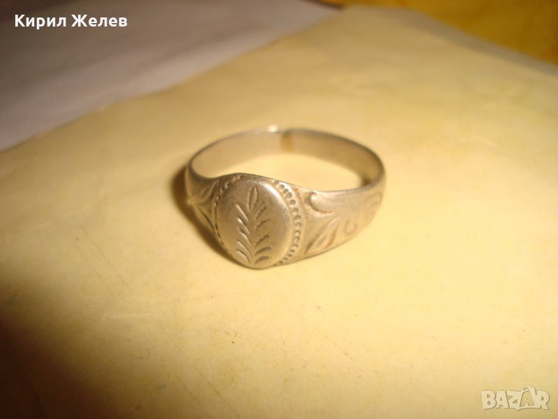 19 ВЕК ВЪЗРОЖДЕНСКИ СРЕБЪРЕН ПРЪСТЕН РЪЧНО ФЛОРАЛНО ОРНАМЕНТИРАН с КАЛЕМ САЧАН СТАР УНИКАТ 24482
