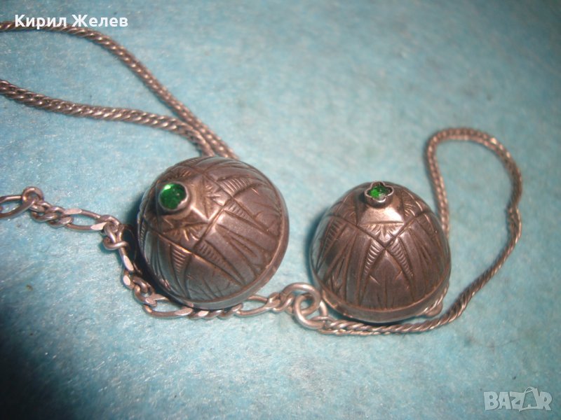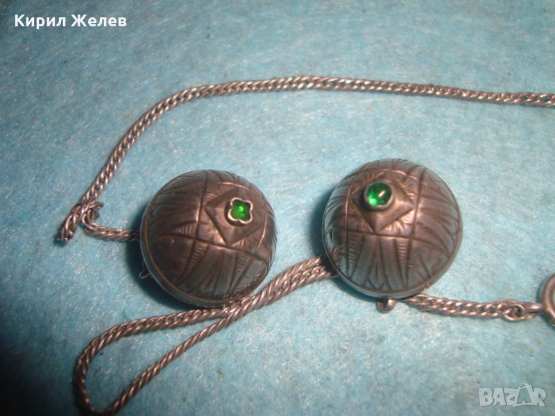 ОКСИДИРАНО СРЕБРО ВИСОКА ПРОБА. ИЗКЛЮЧИТЕЛНО ФИНА ЮВЕЛИРНА ИЗЦЯЛО РЪЧНА МАЙСТОРСКА СТАРА ИЗРАБОТКА. ИНКРУСТИРАНИ 2 НАТУРАЛНИ ИЗУМРУДА. РЪЧНА, с КАЛЕМ, ГРАВИРОВКА. УНИКАЛНИ РЕТРО БИЖУТА, НЯМАЩИ АНАЛОГ! Пускам ГОЛЯМА СЕРИЯ от най-разнообразни СРЕБЪРНИ БИЖУТА - украшения, кръстчета, медальони, пръстени, обеци, колиета, брошки, гривни, гердани и други най-различни; повечето са от СРЕБРО , има и няколко посребрени, позлатени, бронзови, медни, неръждаема стомана, САЧАН , и други подобни ювелирни материали и изделия, както и много от тях са инкрустирани със скъпоценни или полускъпоценни камъни. Има много нови, както и старинни, ретро, арт, ръчна изработка, ВЪЗРОЖДЕНСКИ и други колекционерски интересни неща. Някои са подходящи и за хенд-мейд материал. Почти всички са в отлично състояние, снимките ги ОНАГЛЕДЯВАТ! Изпращам по Еконт и Спиди винаги с Опция Преглед и Тест и Отстъпка-транспорт.