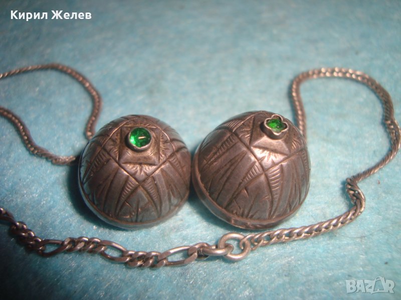 2 УНИКАЛНИ СТАРИ СРЕБЪРНИ УКРАШЕНИЯ с ЕМЕРАЛД СМАРАГД РЪЧНО ОРНАМЕНТИРАНИ с ЩЕМПЕЛ на АТЕЛИЕТО 26341