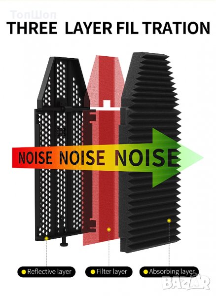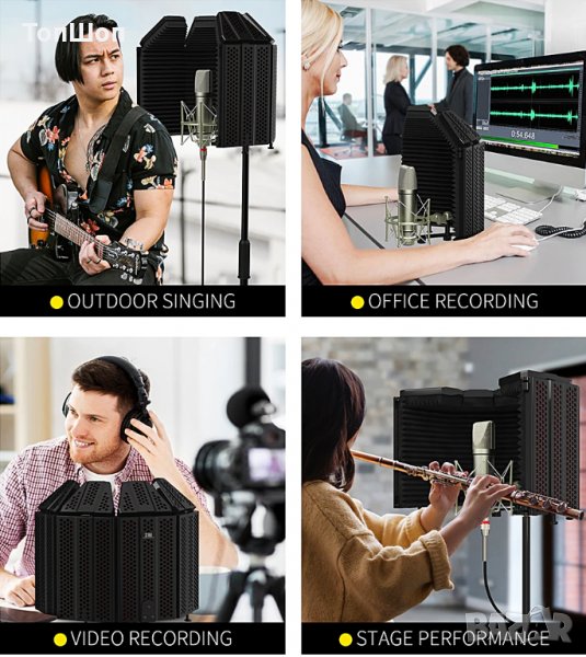 ✅ НАМАЛЯВА ШУМОВИТЕ СМЕШЕНИЯ – Шумоизолиращата стойка има три слоя, които работят в тандем, за да намалят шума по време на запис. По-специално разчита на ⅗ рефлектори с триъгълен изолационен материал от гъба с висока плътност, който намалява разпространението на интерференционните звукови вълни и създава перфектни условия за запис, които водят до възвишени записи.