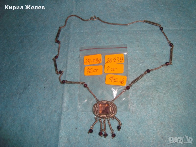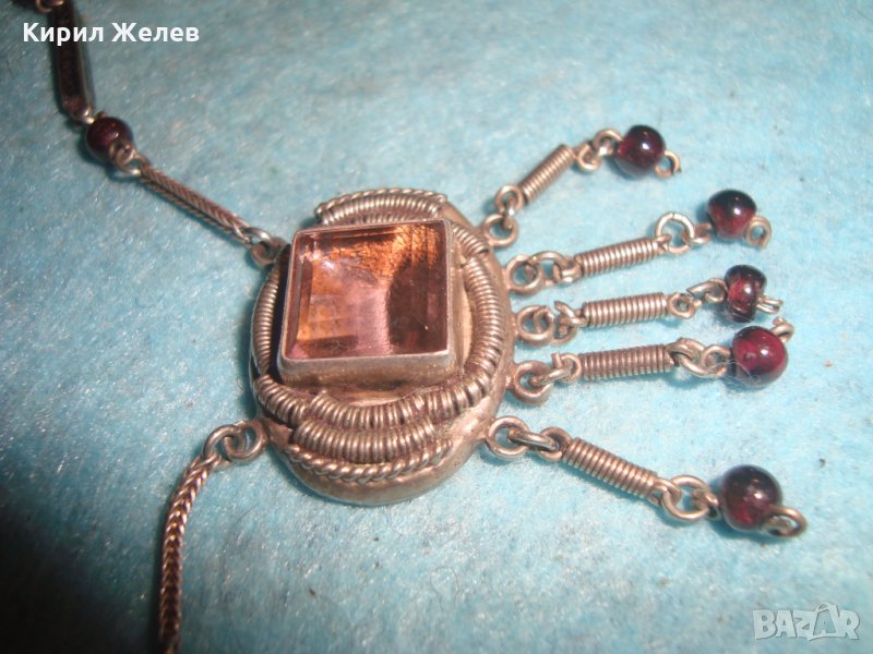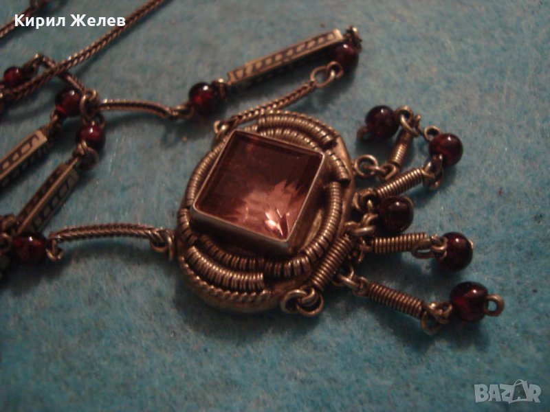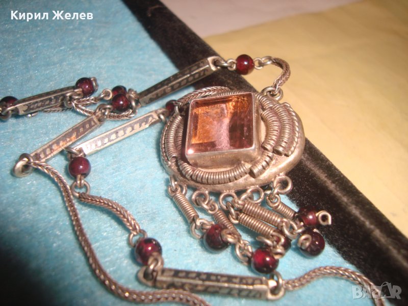 СТАРИННО СКЪПОЦЕННО СРЕБЪРНО КОЛИЕ СРЕБРО 800 с АМЕТИСТ АРТ ДЕКО АНГЛИЯ ЮВЕЛИРЕН РЪЧЕН УНИКАТ 26439