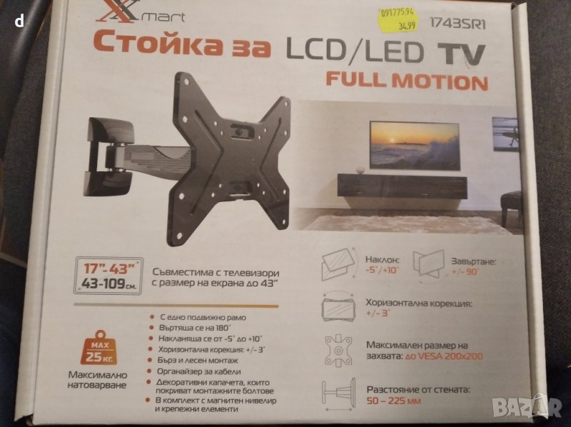 Стойка за TV от 17-43", снимка 1 - Стойки, 3D очила, аксесоари - 34862374 Стойка за TV от 17-43", снимка 2 - Стойки, 3D очила, аксесоари - 34862374 Стойка за TV от 17-43", снимка 3 - Стойки, 3D очила, аксесоари - 34862374 1/3