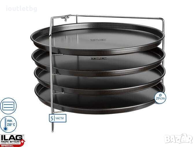 Комплект, състоящ се от 4 тави за пица и 1 рамка