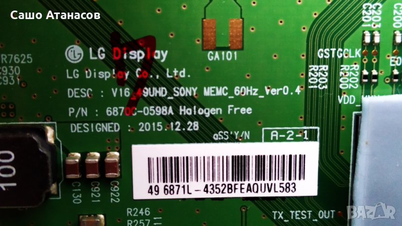 T-Con Board: V16_49UHD_SONY MEMC_60Hz_Ver0.4 / 6870C-0598A / 6871L-4352B - 100лв.