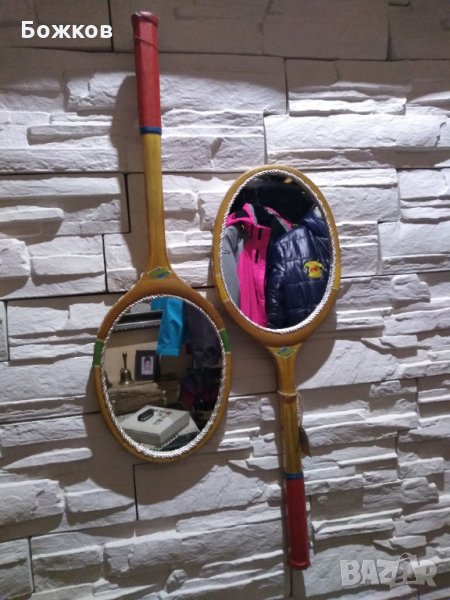 Уникални и нестандартни ръчно изработени кристални огледала. Рамките са рециклирани от дървени ретро тенис ракети. Цената е на бройка. Двете са изработени като комплект. Могат да се закачат по различен начин. Подходящи за декорация или подаръци за мъже и жени на всяка възраст. Конплектът от двете червени огледала е продаден.