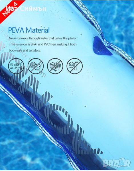 Торбата е от най-високо качество, материал ПЕВА(гугълнете го на английски) той се характеризира с изключително голяма устойчивост на влага, горещина и температурни промени, използва се също и като покривало на коли, от което говори достатъчно за него, тегло 104гр. дължина на маркуча 110см.