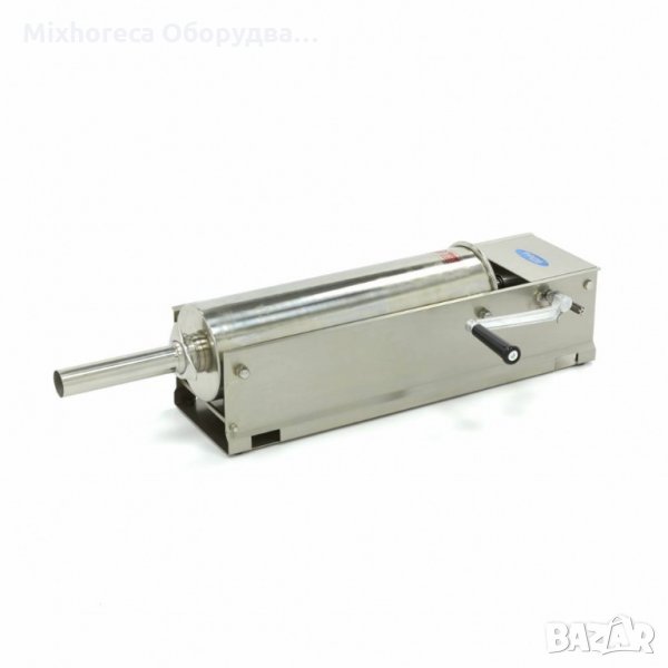 Ръчна пълначка от Maxima за месо 7л – хоризонтална. Изработена изцяло от неръждаема стомана в съответствие със строгите международни хигиенни стандарти. С допълнителните специално проектирани приставки можете лесно и бързо да създадете голямо количество колбаси- 16, 22, 32 и 38 мм.