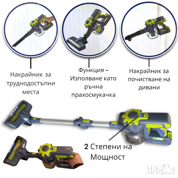 Акумулаторна Прахосмукачка GRENTO 22V с LED Осветление