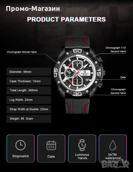 Часовник NAVIFORCE NF 8018T BBR се предлага в луксозна брандирана кутия, гаранция,бърза доставка в рамките на 1-2 работни дни.