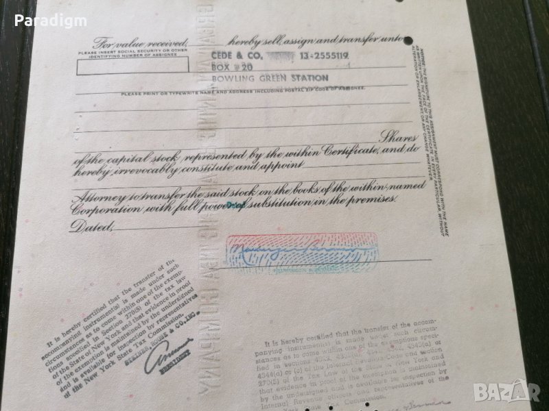 Сертификат за притежание на акции от 1973г.