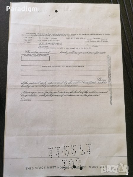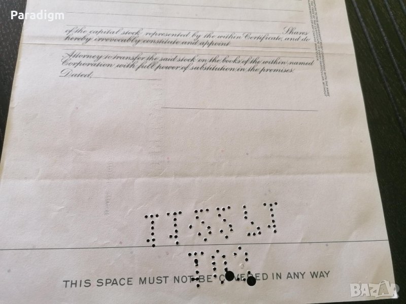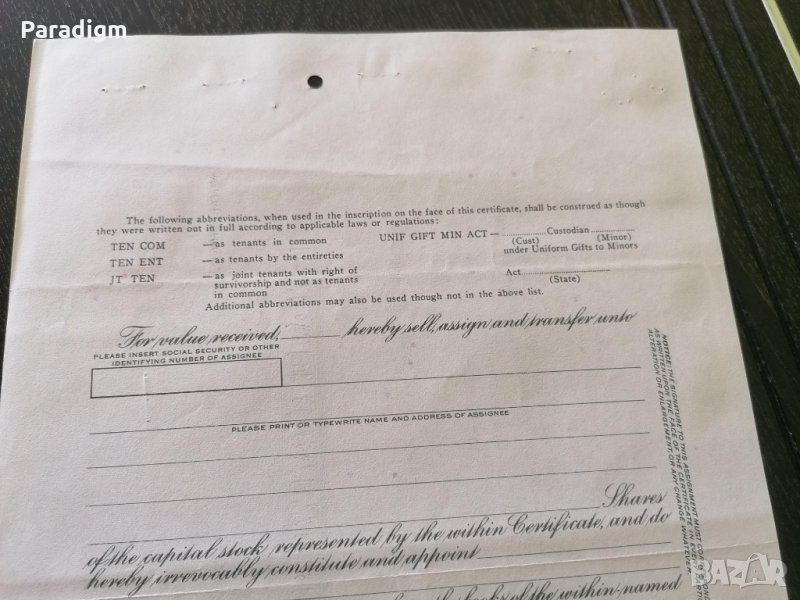 Сертификат за притежание на акции от 1971г.