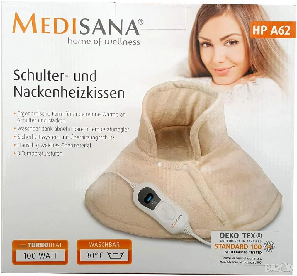 подгряваща яка за рамене и врат, електрическа грейка Medisana - Германия. 100W, с възможност за изпиране на 30 градуса. Текстил - Oeko-Tex, стандарт 100. С 3 нива на температурен режим, вградена система за защита от прегряване. Функция автоматично изключване след 90 мин.