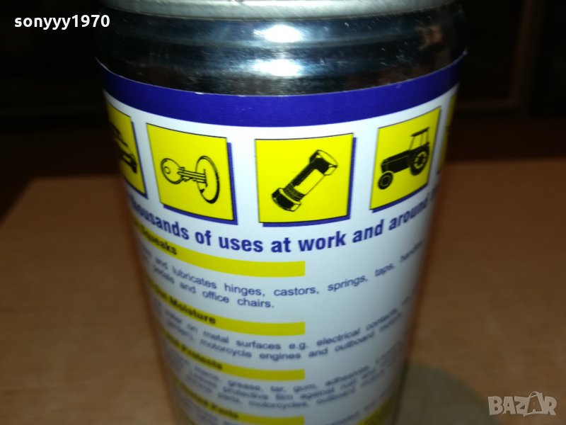 СПРЕИ-WD-40 е американска компания и търговска марка на известния аерозолен препарат, разработен от Норман Ларсен през 1953 г. в създадената от него Rocket Chemical Company в Сан Диего, Калифорния. Първоначално препаратът е разработен за индустриални потребители като водоотблъскващо средство, предпазващо от корозия. от днес 28.02.22г пращаме със спиди или еконт с преглед и тест след превод на капаро за куриерската услуга поради зачестили некоректни потребители-поръчки само тук в саита! по телефона и със смс не! краини цени! бартери не правиме! всеки ден нови неща-още 2-3 наши обяви тук