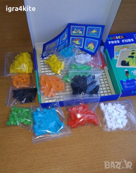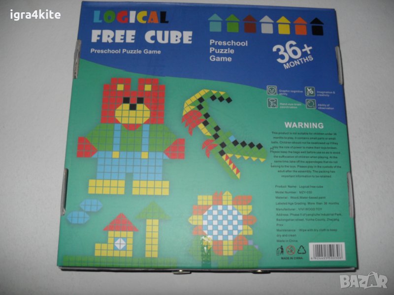 С този детски дървен комплект състоящ се от стотици дървени кубчета в различни цветове децата ще могат да подреждат най-различни мозаечни изображения.
