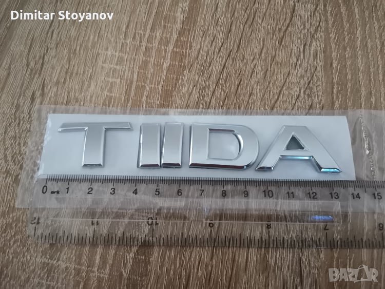 Нов надпис за модела TIIDA на Нисан в сребристо. Размерите са дадени на снимките.