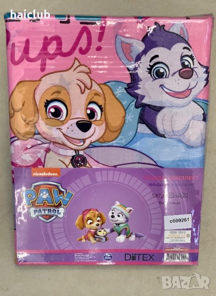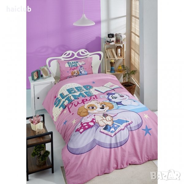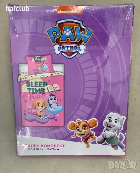 Спален комплект с десен Paw Patrol Bed time на любимите кученца герои на вашето дете . Изработен от високачествена и нежна памучна материя, този продукт ще осигури спокоен и здрав сън на Вашето дете.