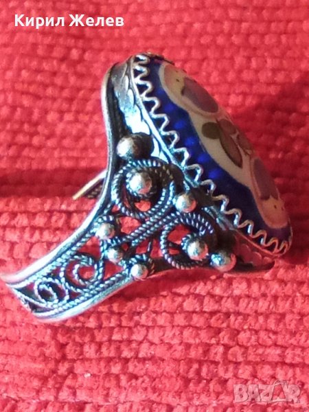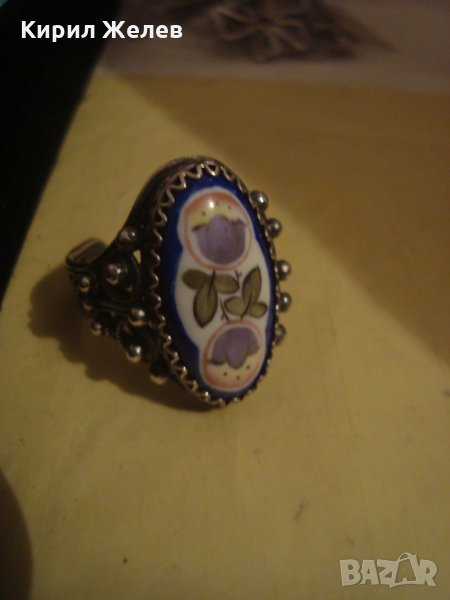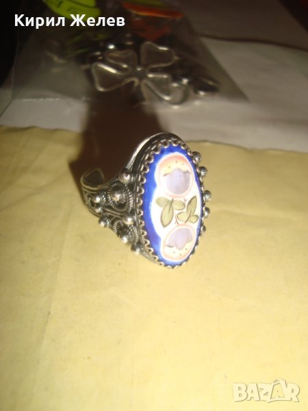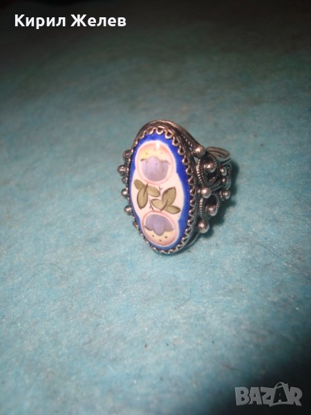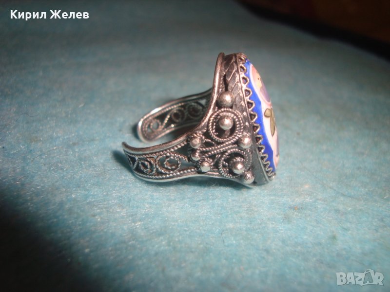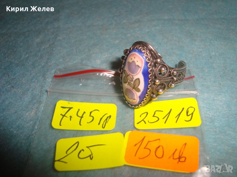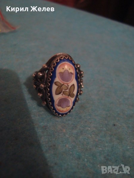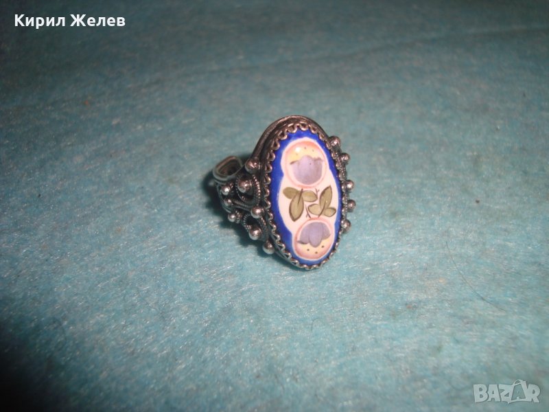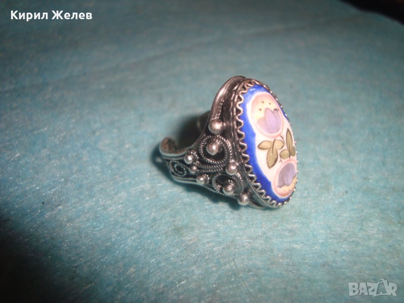 СТАРИНЕН СРЕБЪРЕН ПРЪСТЕН ФИЛИГРАННО СРЕБРО с ГРАНУЛАЦИЯ и РЪЧНО РИСУВАН ПОРЦЕЛАН БИЖУ УНИКАТ 25119