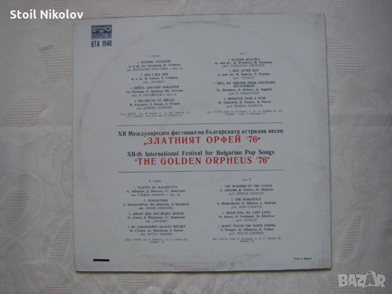 Грамофонна плоча - ВТА 1948 - Златният Орфей '76: XII международен фестивал на българската естрадна песен