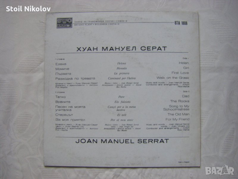 Грамофонна плоча - ВТА 1808 - Хуан Мануел Серат