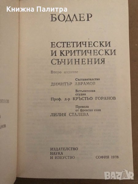 Шарл Бодлер - Естетически и критически съчинения , снимка 1 - Други - 34894882 Шарл Бодлер - Естетически и критически съчинения , снимка 2 - Други - 34894882 1/2