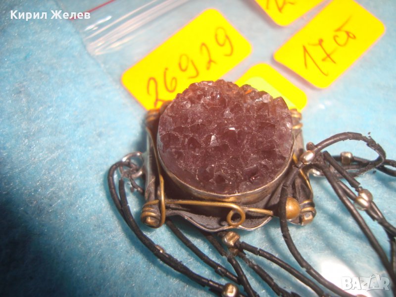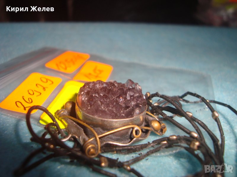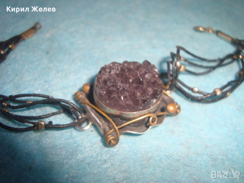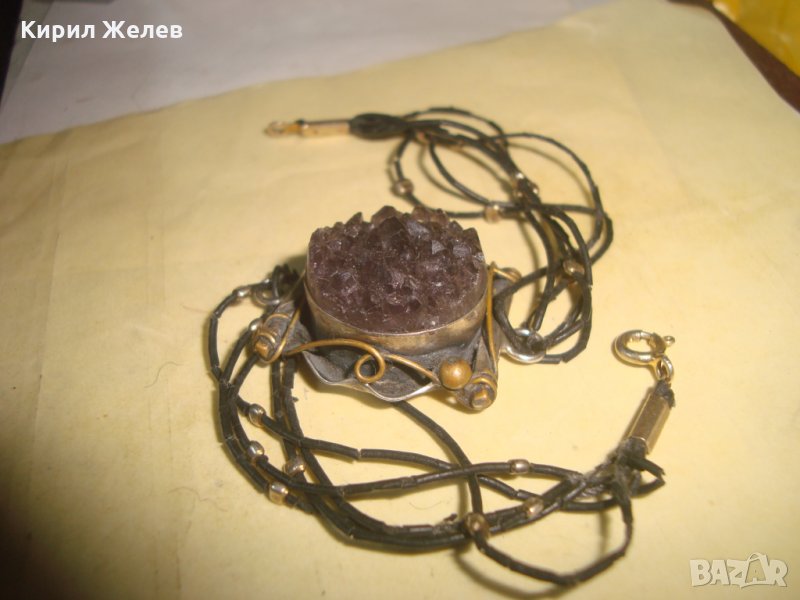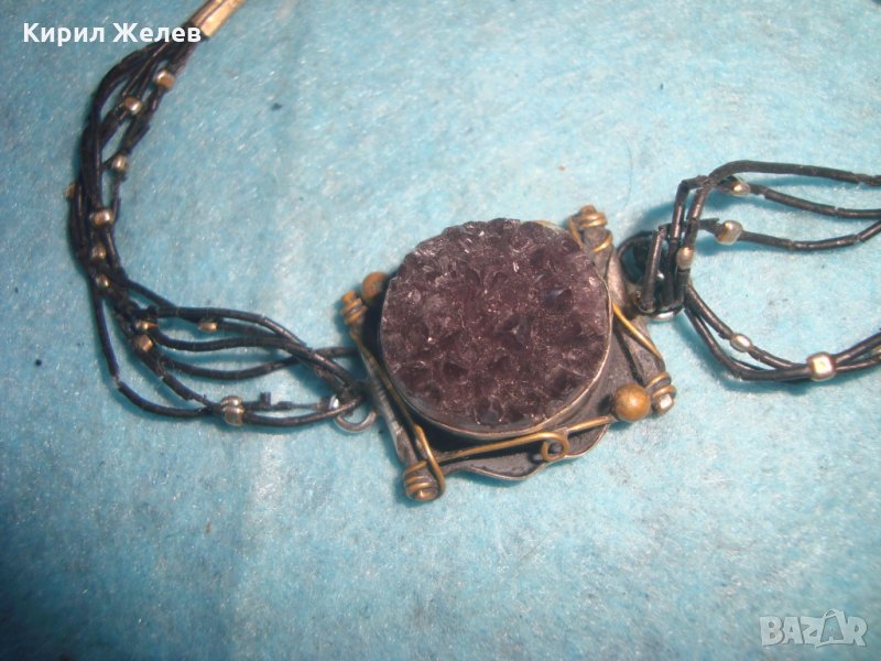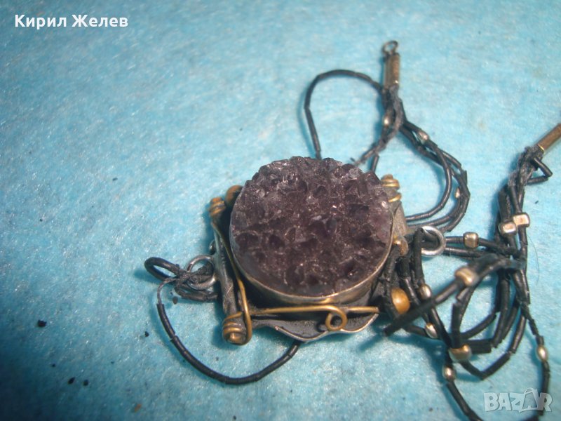 СТАРА АРТ НУВО ГРИВНА с ОГРОМЕН МИНЕРАЛ АМЕТИСТ ХЕНД МЕЙД ВИНТИДЖ МАЙСТОРСКА ИЗРАБОТКА БРОНЗ 26929