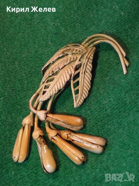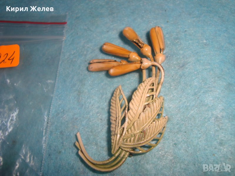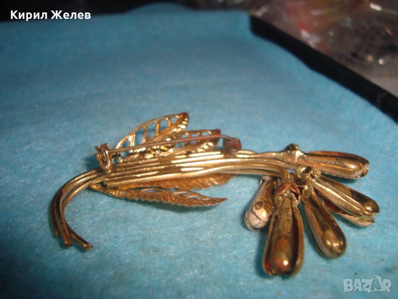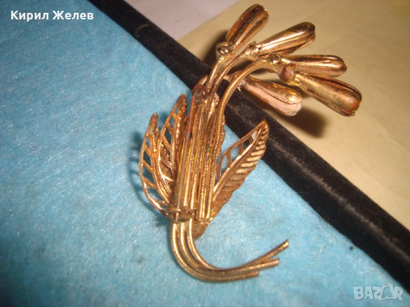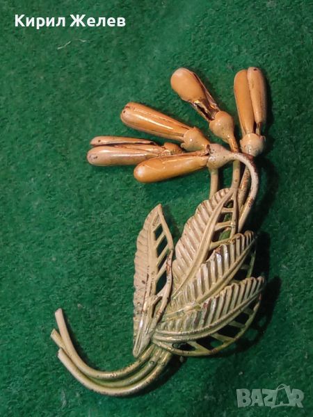 СТАРА АРТ НУВО ЗЛАТИСТА ЛАКИРАНА ФЛОРАЛНА ВИНТИДЖ РЕТРО БРОШКА 26924