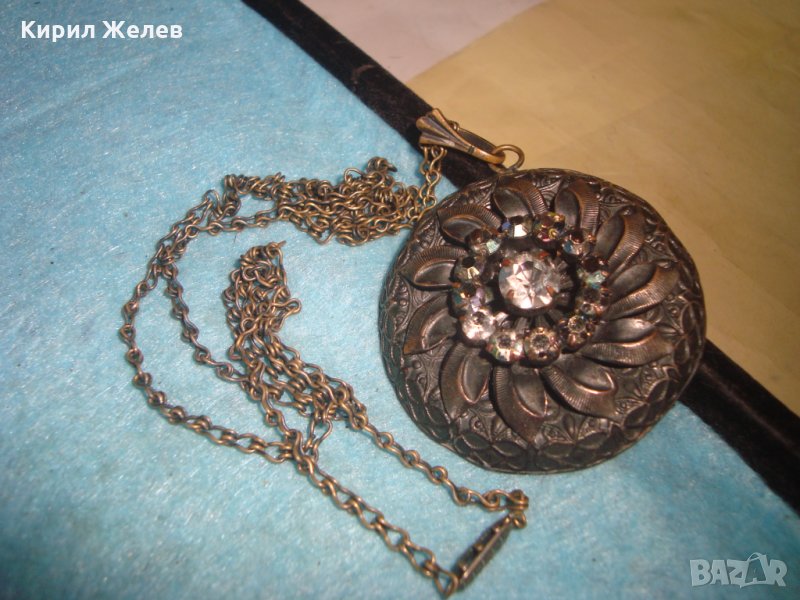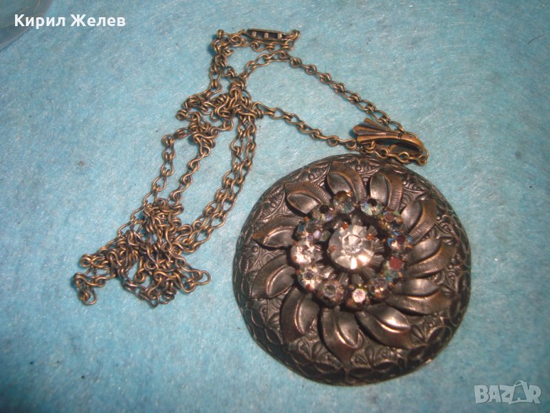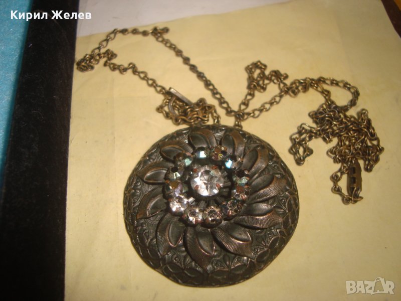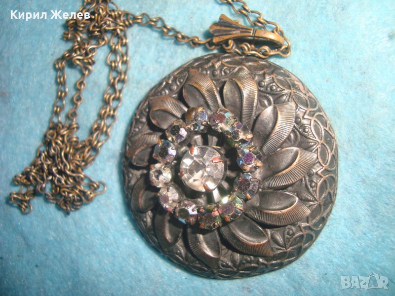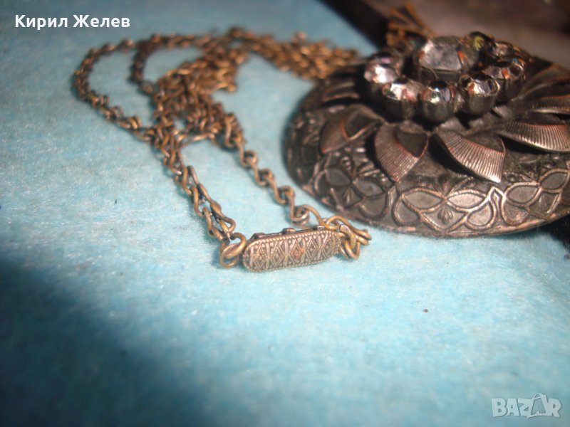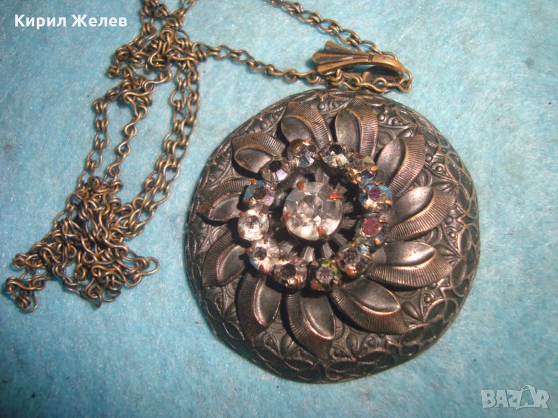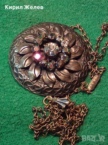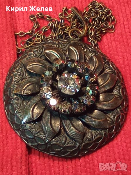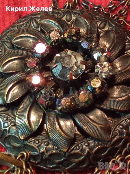 СТАРИННА БРОНЗОВА СКЪПОЦЕННА ВИНТИДЖ ОГЪРЛИЦА с ИСКРЯЩИ ФАСЕТИРАНИ БОХЕМСКИ КРИСТАЛИ АРТ ДЕКО 26925