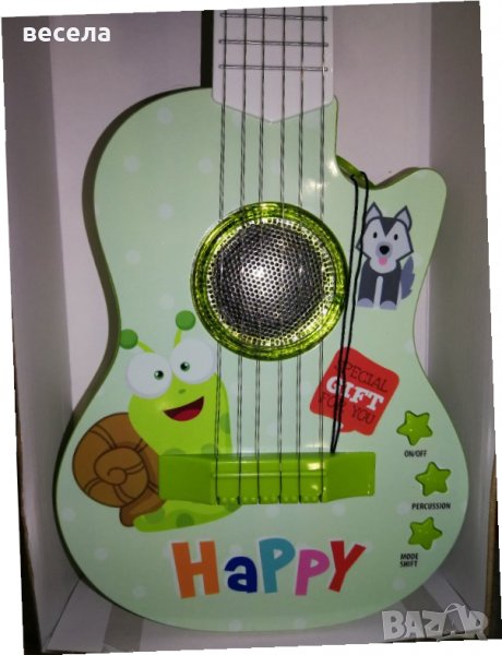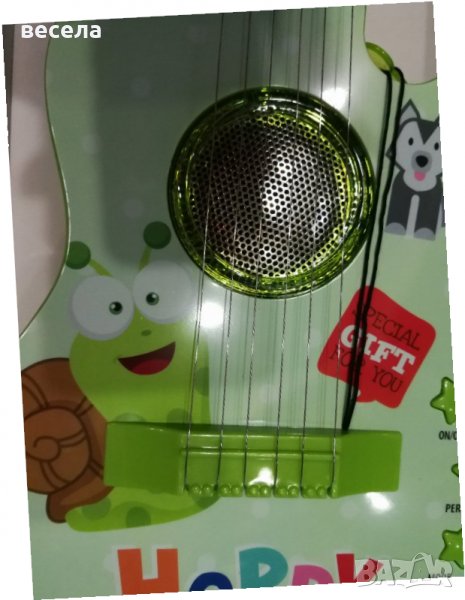 Детска китара с много мелодии, поставят се батерии, или свири на струните.