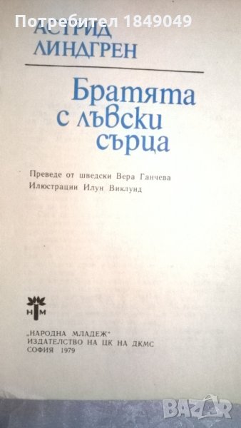Астрид Линдгрен "Братята с лъвски сърца" - 1 лв./1979г.,меки корици/.