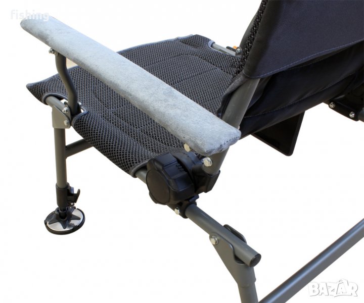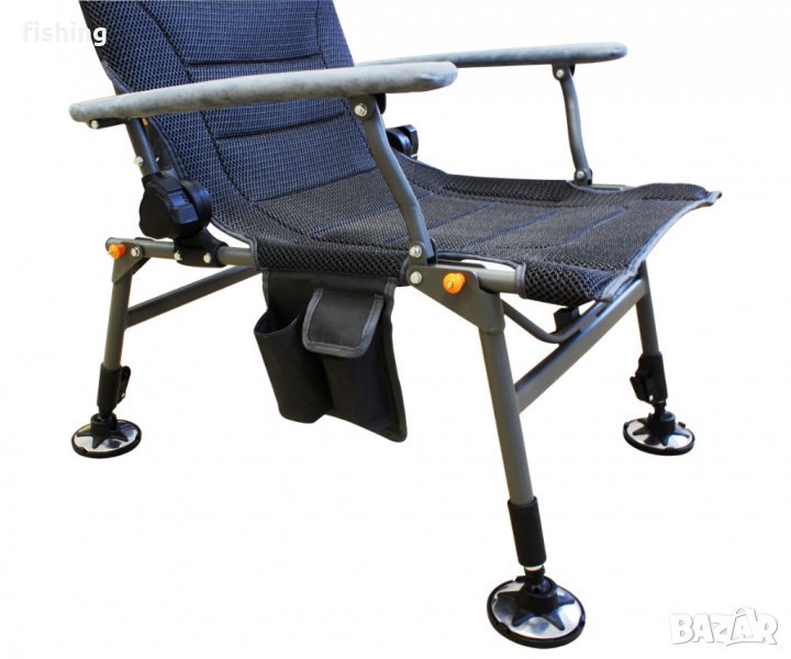 Риболовният стол FC1020 разполага с лека и стабилна алуминиева конструкция, а седалката му е изработена от 3D мрежеста найлонова материя, осигуряваща отлична вентилация. Функционален и с лесни настройки за ъгъла на седалката и височината на краката, столът ще ви осигури изключително удобство и стабилност при всякакви терени за риболов. Лапите за кал са с въртящ се дизайн и се напасват лесно към различните ъгли на терена, а зъбчета им фиксират FC1020 здраво на избраната позиция. Допълнителният подглавник на седалката се регулира с до 18 cm по височина и има ергономична форма, осигуряваща комфортна опора за главата.